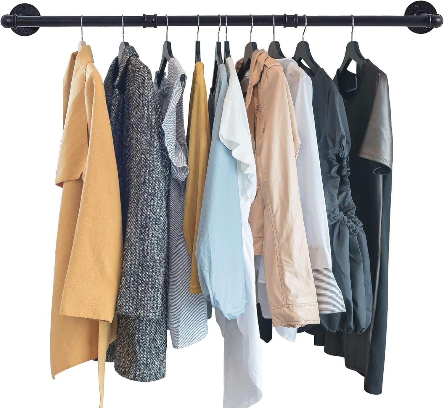 Very sturdy and durable,this garment rack is made of high quality iron pipes,smooth matte black finishing.